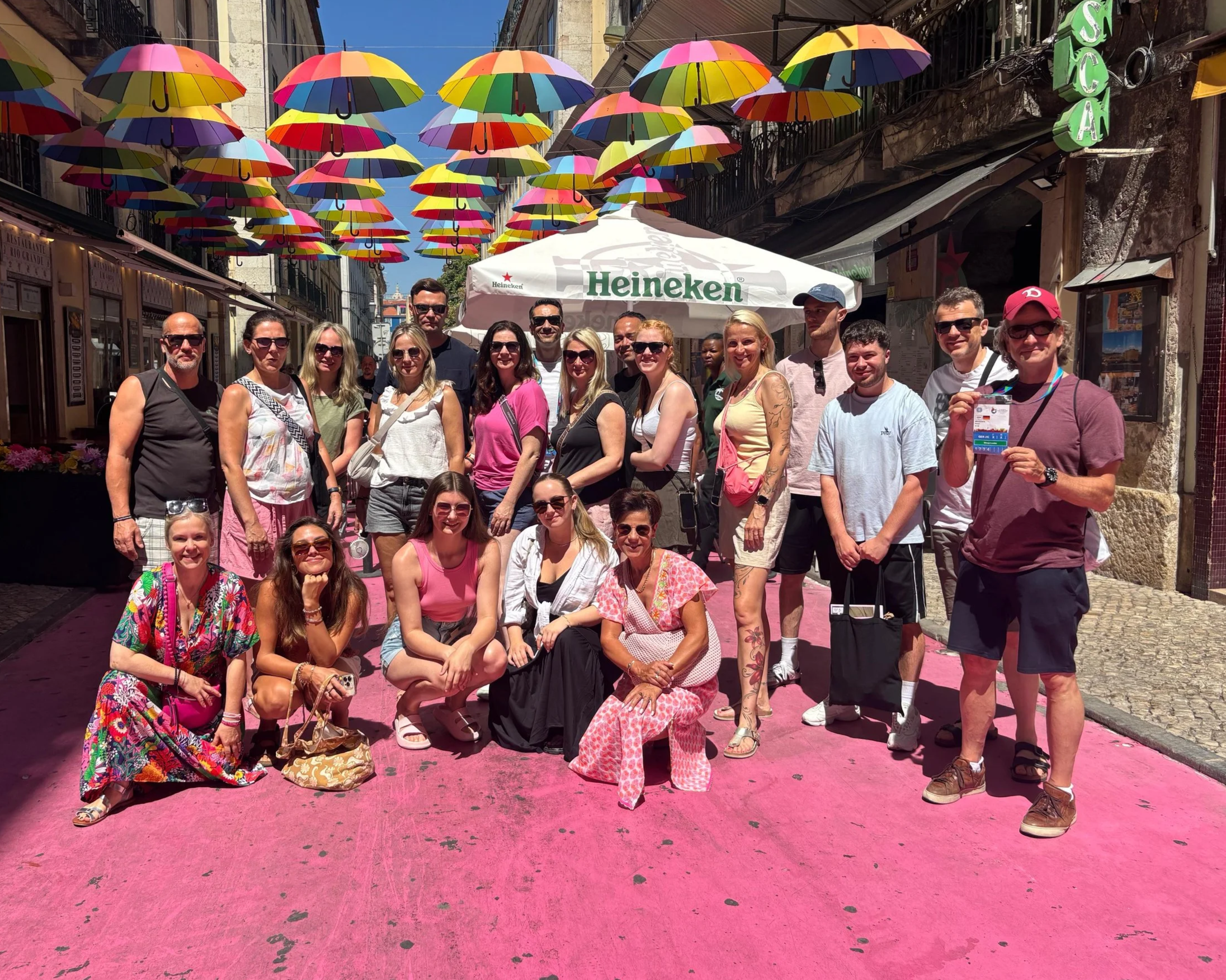 Unser letzter Tag in Lissabon brach an und wir wollten ihn nicht einfach verstreichen lassen. Am Abend zuvor haben wir von einem Ort erfahren, der wie für uns erschaffen war: die Pink Street. Also machten wir uns auf den Weg, um ein letztes Gruppenbild zu schießen! Danach bummelten wir noch durch die Stadt. Stöberten durch kleine Läden, erkundeten den Time Out Market und schnappen uns die letzte Souvenirs. Niemand sprach es laut aus, aber wir alle hingen an diesem Tag, als wollten wir ihn festhalten.